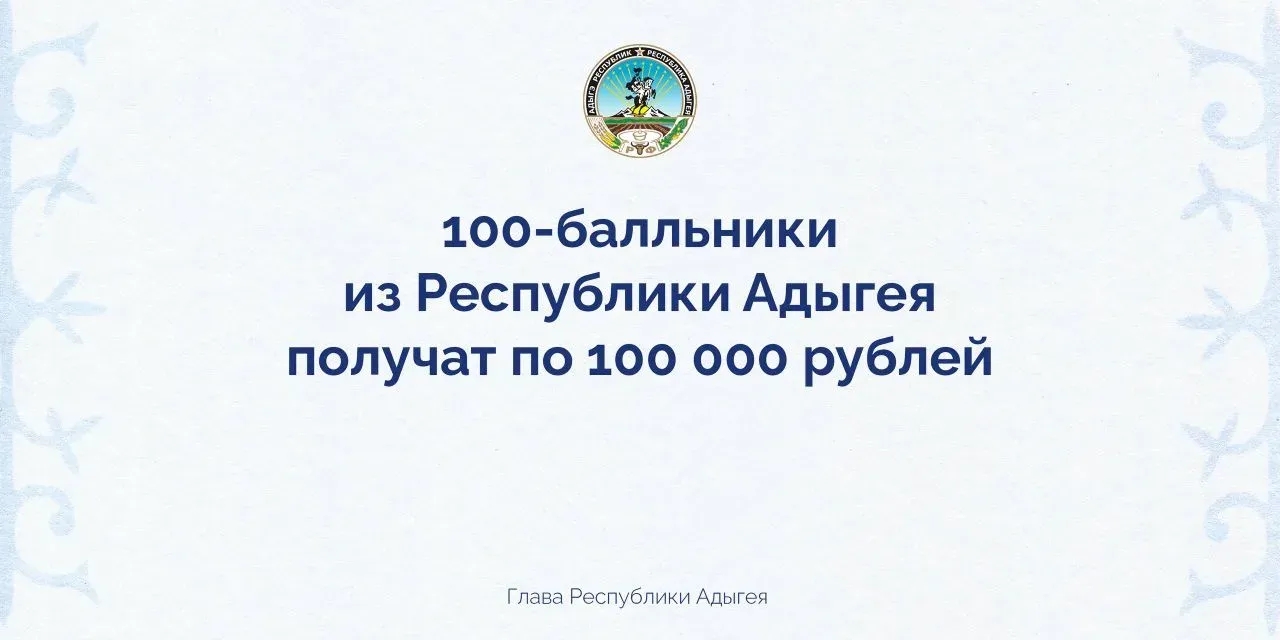Глава Республики Адыгея Мурат Кумпилов поделился радостной новостью: стобалльники ЕГЭ в Адыгее будут получать денежную премию в размере 100 000 рублей из республиканского бюджета! Соответствующий указ уже подписан.